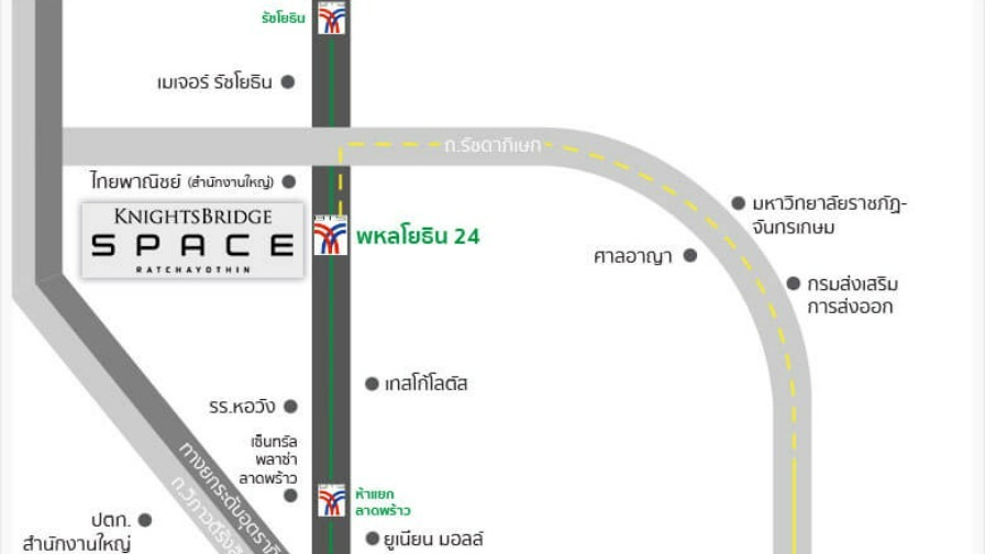 - ใกล้เดอะ เซ็นทรัล พหลโยธิน (กำลังก่อสร้าง), โลตัส ลาดพร้าว และตลาดกรีนวินเทจ รัชโยธิน