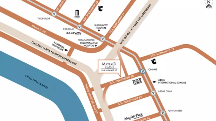 - ใกล้ฮาบิโตะ มอลล์, อ่อนนุช พลาซ่า (พีเพิ่ลพาร์ค), แม็คโคร ฟูดเซอร์วิส อ่อนนุช, แม็กซ์ แวลู อ่อนนุช, เดอะฟิล สุขุมวิท 54 และ ตลาดอ่อนนุช