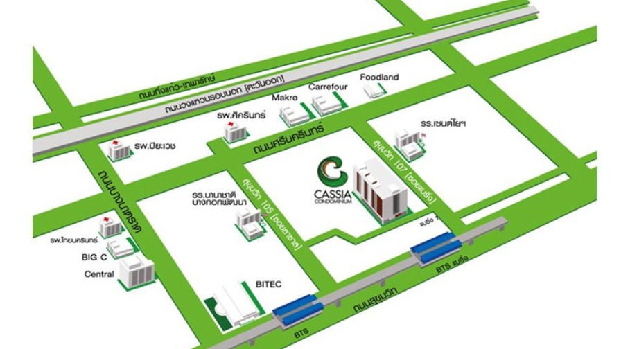 - ใกล้ศูนย์นิทรรศการและการประชุมไบเทค (Bangkok International Trade & Exhibition Centre: BITEC)