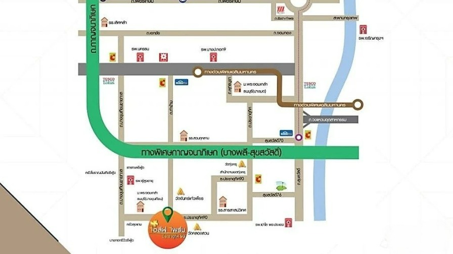 - ใกล้ทางพิเศษกาญจนาภิเษก (บางพลี-สุขสวัสดิ์)