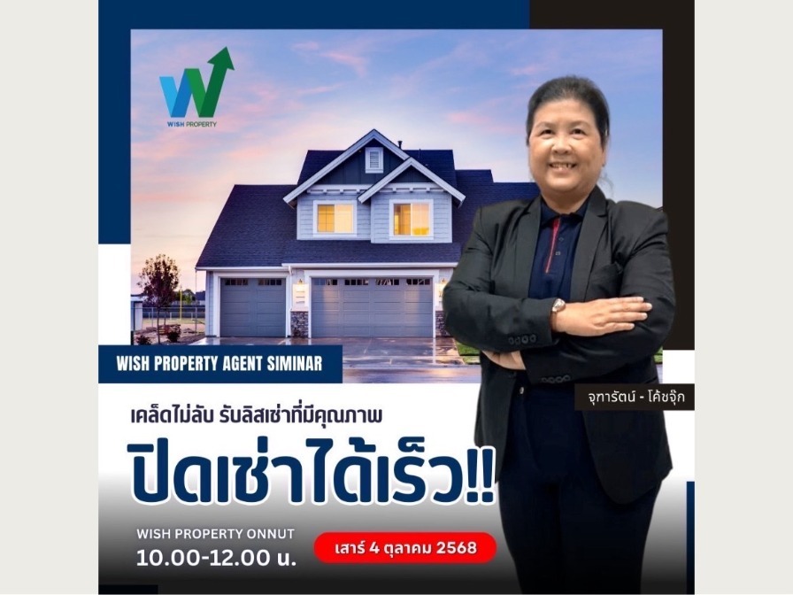 สัมมนา AGENT ขายบ้าน.com วันเสาร์ 4 ต.ค. 68 เวลา 10.00-12.00 น. @สำนักงานใหญ่ Wish